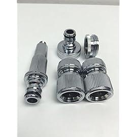 „Gartenset 1 Chrom/Messing 1/2″“ Gardena kompatibel 2x Schnellverbinder + 1″“ Hahnanschluss + Adapter auf 3/4″“ + Gartenspritze“ Gardena kompatibel