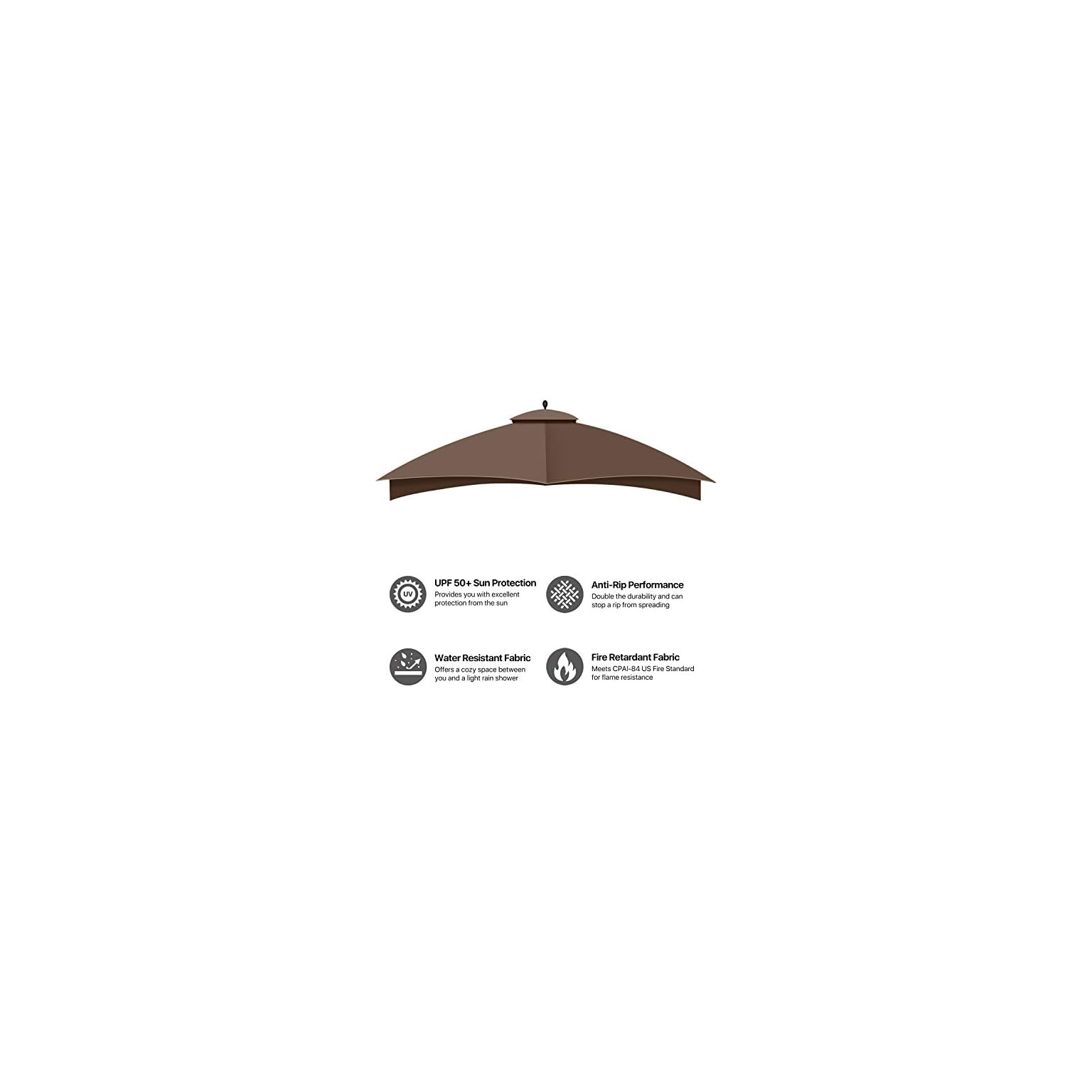 Flexzion-Pavillon-Ersatzzelt-fuer-Lowes-Home-Depot-Allen-Roth-3×3-m-UV-UPF-50-doppelstoeckig-einfarbiger-Rand-wasserabweisend-Schatten-fuer-den-Aussenbereich-Garten-Terrasse-Pavillon-braun