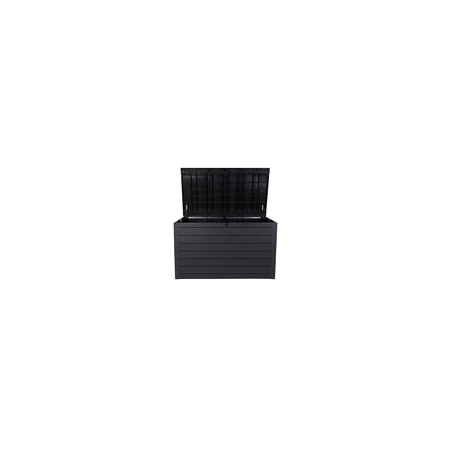 Keter-Ontario-Kissenbox-XXL-Auflagenbox-anthrazit-870-Liter-Holz-Optik-mit-Gasdruckfedern-ca-146-x-82-x-86-H-cm