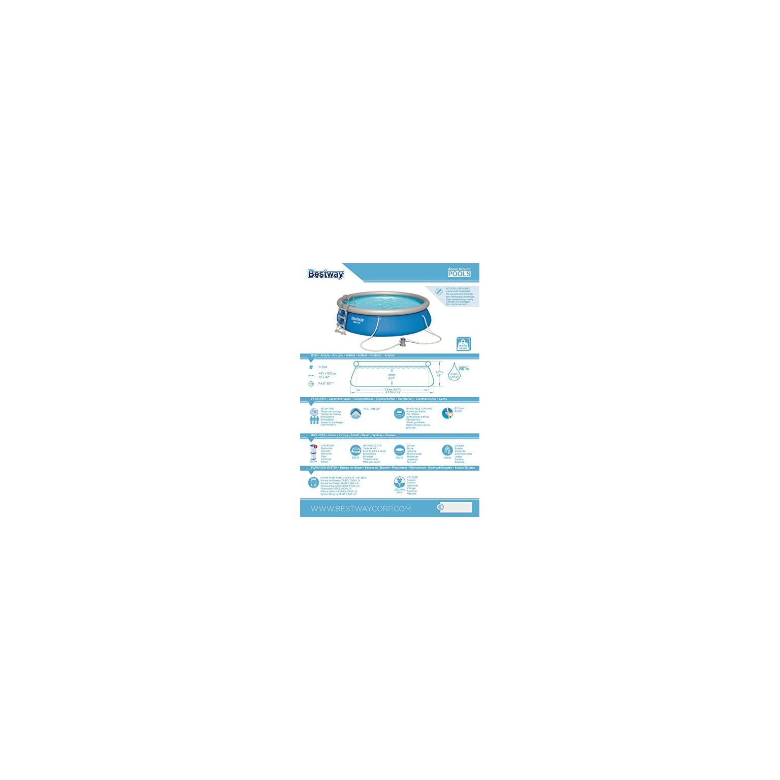 Bestway-Fast-Set-Pool-Set-rund-mit-Filterpumpe-Zubehr-blau