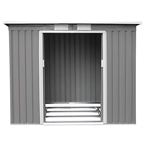 HATTORO-P100-Metall-Gertehaus-213130173-cm-Gerteschuppen-Garten-Schuppen-Gartenhaus-Pultdach-hell-grau