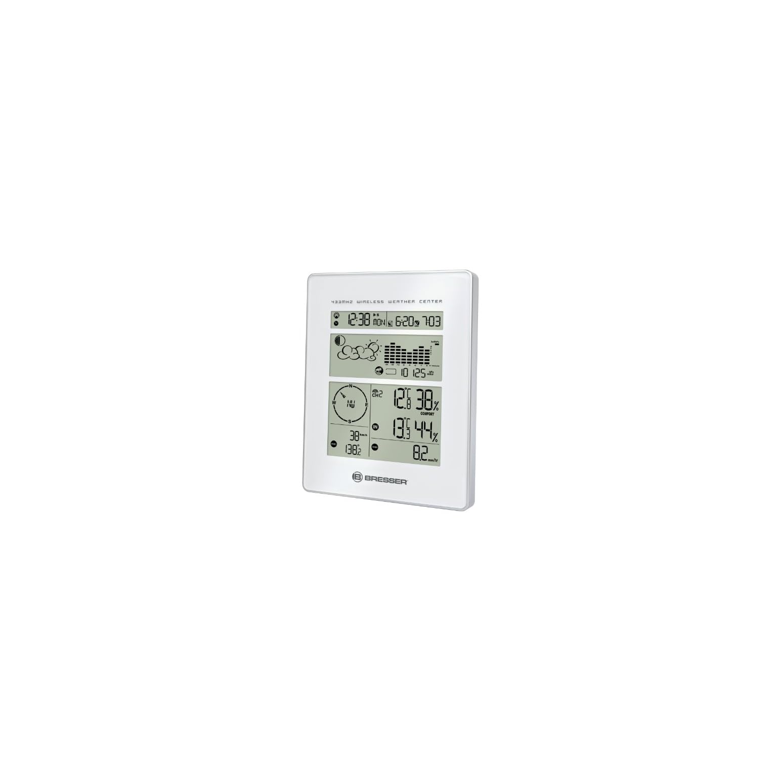 Bresser-Wetterstation-Funk-mit-Auensensor-Wetter-Center-mit-unterteiltem-63-Zoll-Display-mit-Auensensoren-fr-Temperatur-Luftfeuchtigkeit-Luftdruck-Windstrke-Windrichtung-und-Regenmesser-wei