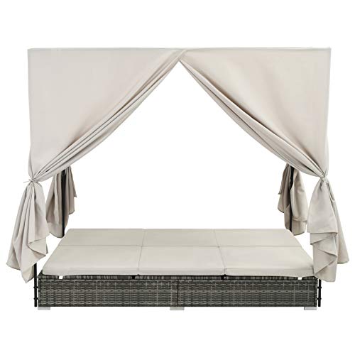 vidaXL-Sonnenliege-mit-Vorhngen-Poly-Rattan-Doppelliege-Gartenliege-Liege
