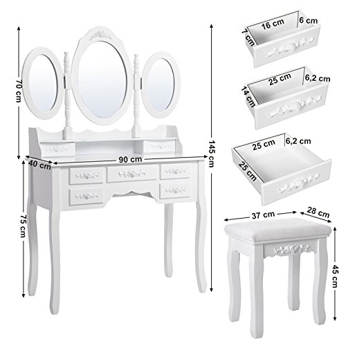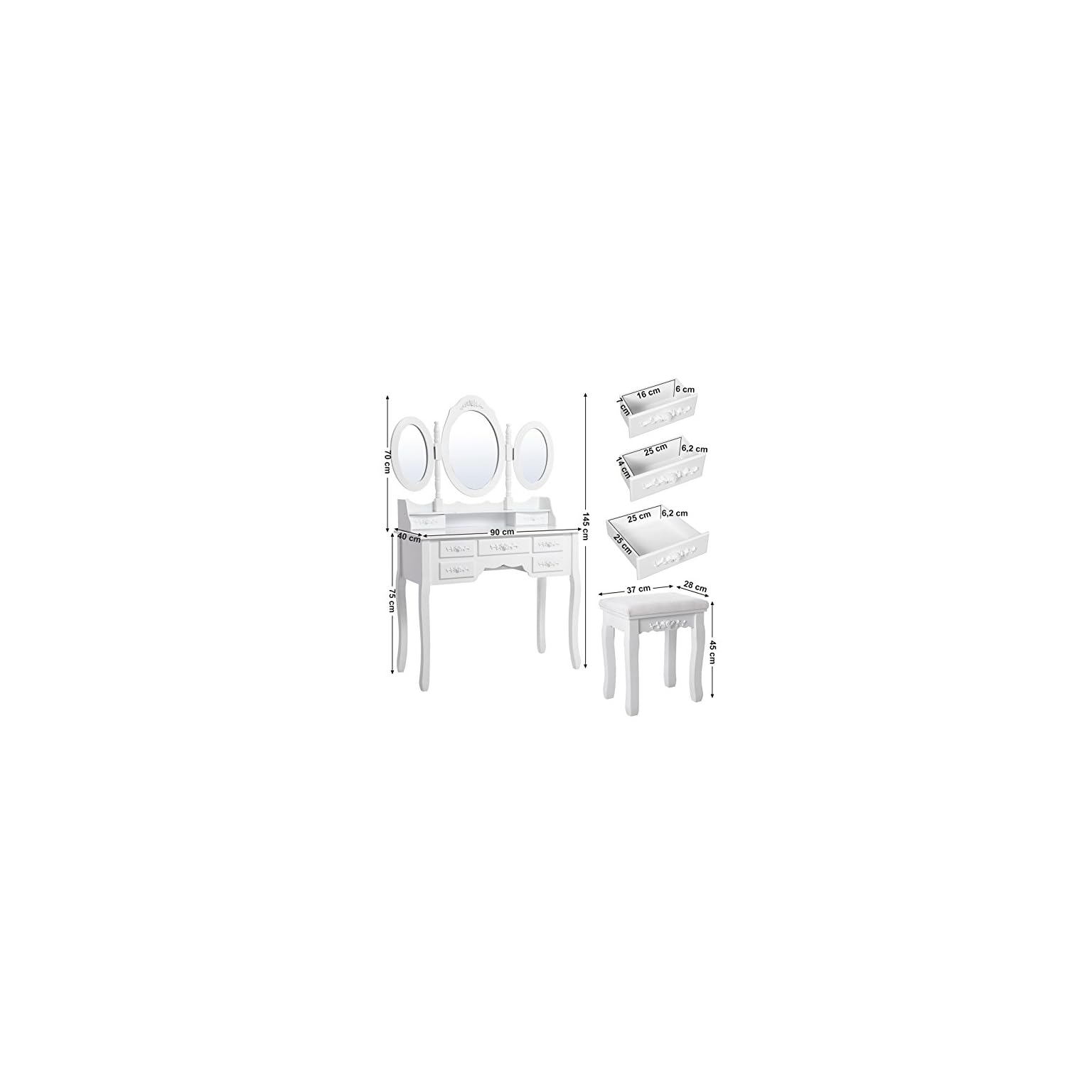 Songmics-luxuris-Kippsicherung-Schminktisch-mit-3-spiegel-und-hocker-Lederimitat-wei-145-x-90-x-40-cm