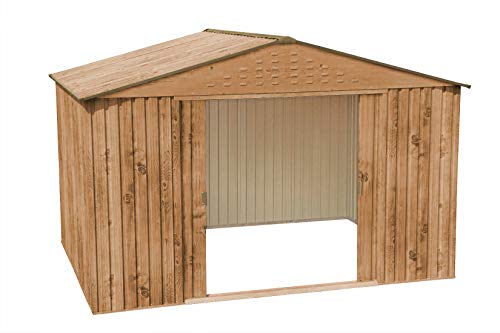 Tepro-7611-Metallgertehaus-Colossus-10×10-Holz-Dekor-Eiche-mit-Giebeldach