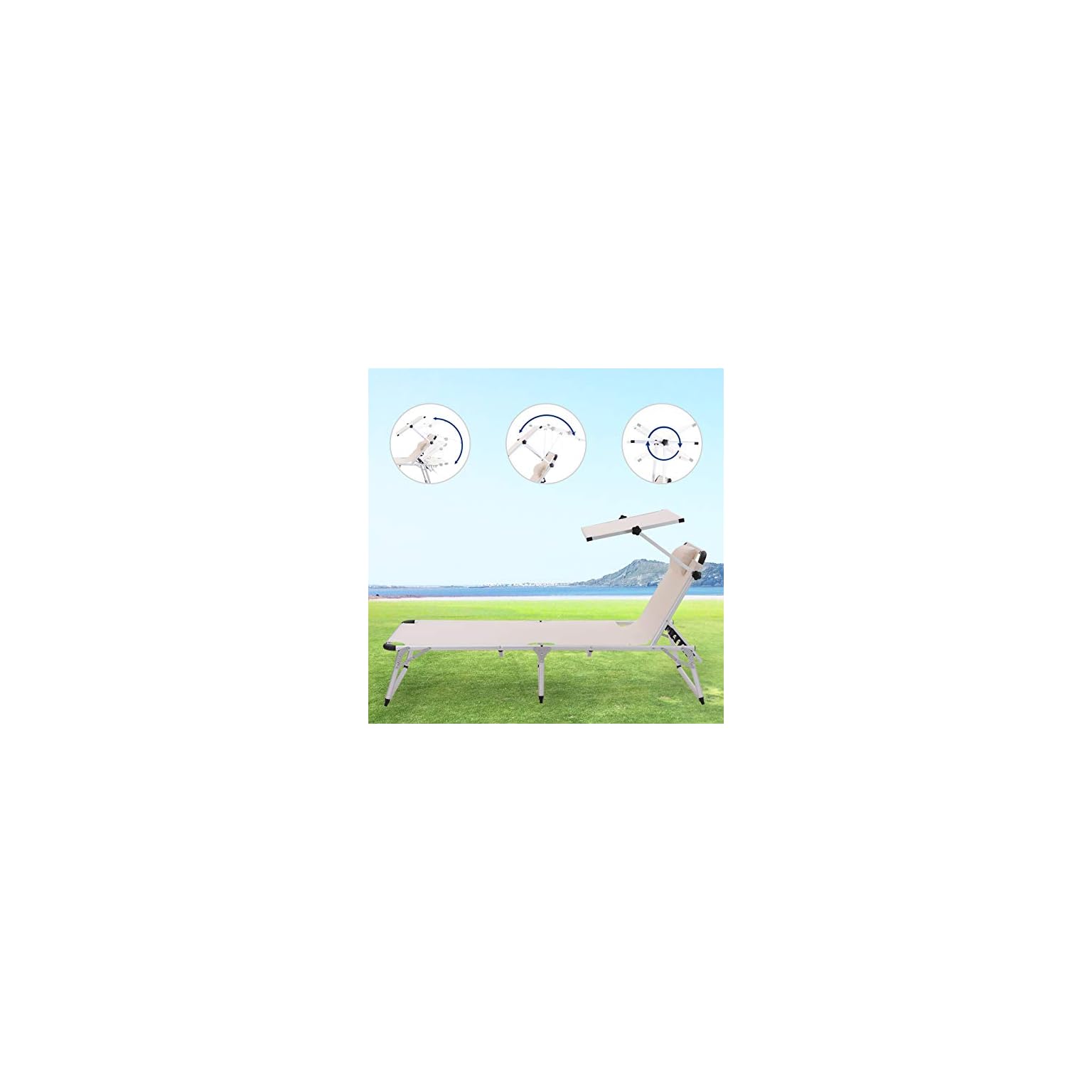 SONGMICS-Sonnenliege-klappbarer-Liegestuhl-Aluminium-Gestell-rostbestndig-Textilene-Gewebe-abnehmbares-Kopfkissen-verstellbares-Sonnendach-bis-250-kg-belastbar