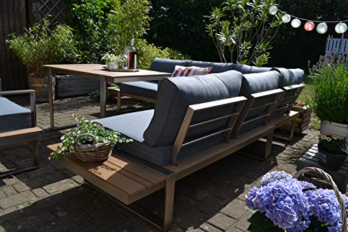 bomey-Dining-Ecklounge-Atlanta-in-Braun-I-Lounge-Set-bestehend-aus-einem-Sessel-und-Ecksofa-in-braun-Tisch-im-EdelstahlTeak-Design-Polstern-in-Grau-I-Garten-Terrasse-Wintergarten