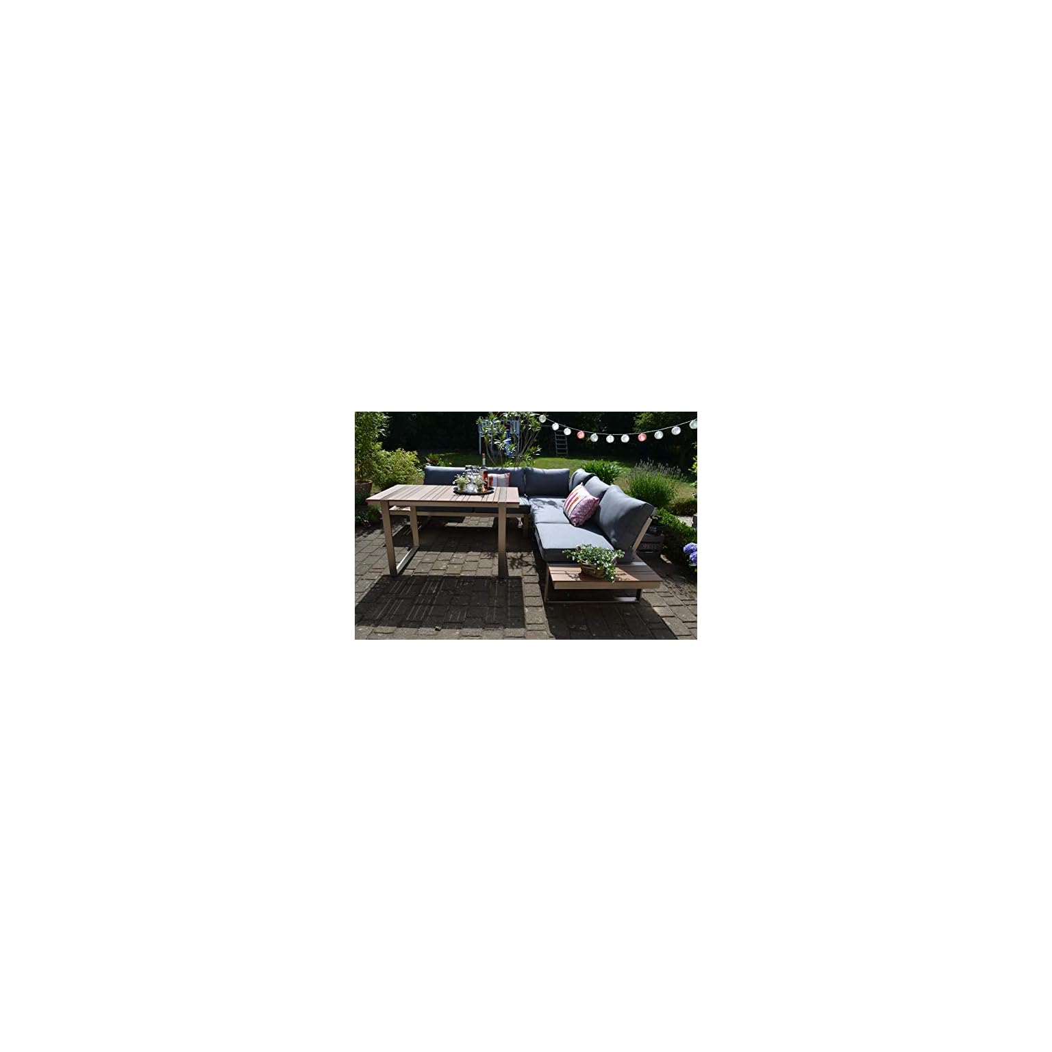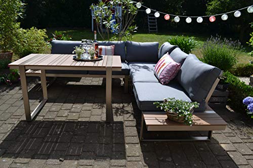 bomey-Dining-Ecklounge-Atlanta-in-Braun-I-Lounge-Set-bestehend-aus-einem-Sessel-und-Ecksofa-in-braun-Tisch-im-EdelstahlTeak-Design-Polstern-in-Grau-I-Garten-Terrasse-Wintergarten