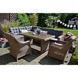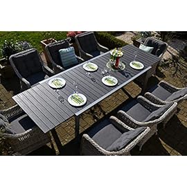 bomey Essgruppe Neapel XL in Grau I 9-teilige Garnitur I Rattan-Sessel Set bestehend aus 8 Sesseln und einem verlängerbaren Tisch auf 305 cm I Polstern in Grau I Für Garten + Terrasse + Wintergarten
