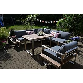 bomey HPL Ecklounge Beltona I 150x90cm Lift Tisch höhenverstellbar + 1 Lounge Sessel I Ecklounge im Teak Design