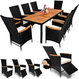 Casaria Polyrattan Sitzgruppe Akazie 8 Stühle Fuß- & Rückenlehne verstellbar 7 cm Auflagen Gartentisch 190x90cm Holz Wetterfest Garten Gartenmöbel Set