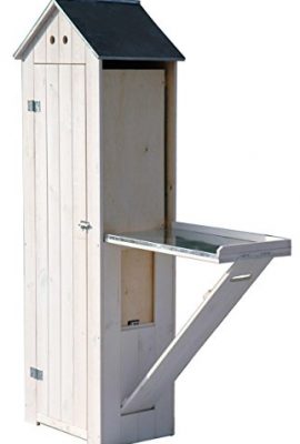 dobar 56215e Schweres Gartengerätehaus mit ausklappbarem Pflanztisch aus massivem Kiefernholz, fertig aufgebaut, 130 x 40 x 185 cm, 35 kg, weiß