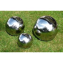 3 er Set Dekokugel Silberkugel Ø 25cm, Ø 20cm und Ø 15cm Edelstahl Kugel Rosenkugel Schwimmkugel Teichkugel