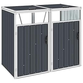 JUNZAI Mülltonnenbox für 2 Müll Tonnen, Müllbox, Mülltonnen Box, Mülltonnenverkleidung, Mülltonne, Anthrazit 143×81×121 cm Stahl