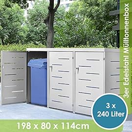 Juskys Edelstahl Mülltonnenbox Arel | 3 Mülltonnen je 240 Liter I Schiebedach & verschließbare Türen I Metall Mülltonnenverkleidung Müllbox