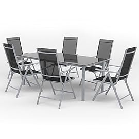 Oskar Alu Sitzgarnitur Gartenmöbel Set 7-Teilig Garnitur Sitzgruppe 1 Tisch 190×87 + 6 Stühle