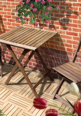Balkonset Terassen Set Bistroset Balkonmöbel 2x Klappsessel + 1x Tisch 60x60cm Massiv