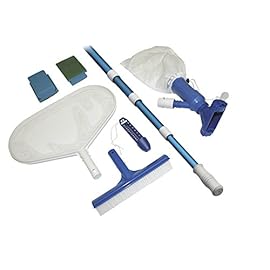 Steinbach Poolreinigung Grundreinigungsset für jedes Schwimmbad (Thermometer, 2x Handschrubber, Beckenreinigungsbürste, Laubkescher, Teleskopstange, Bodensauger), Mehrfarbig, 7-teilig
