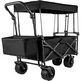 VEVOR Bollerwagen Faltbar, Handwagen faltbar 100 kg, Bollerwagen Dach Luftreifen 600D Oxford Polyester, Klappbarer Handwagen mit 2 Klettbändern, für Aktivitäten im Freien