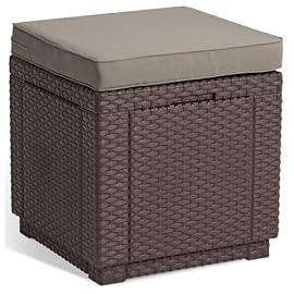 Allibert 206721 Hocker mit Kissen Cube w/ cushion, Rattanoptik, Kunststoff