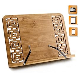 Bambus Kochbuchhalter Leseständer, faltbar Buchstütze Stand mit einstellbarem Rücken & elegantes Muster für Kochbuch, iPad Air 2 3 4, iPad Mini 4, iPad Pro, Kindle,Samsung Tablet PC und mehr