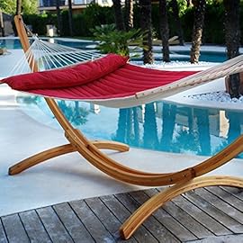 Unbekannt Hängematten-Set Amazonas Arcus aus Lärche lasiert mit American Hammock Lifestyle Fuego RED mit Kissen und wetterfest