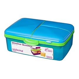 Sistema Slimline Quaddie Brotdose Kinder mit Fächern | 1,5 l | stapelbare und luftdichte Lunchbox mit Deckel | BPA-frei | blaugrün