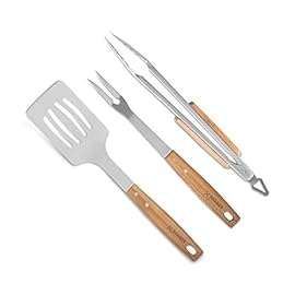 Akazienholz Grillbesteck-Set Barney Barbecue 3 tlg. von Springlane Selection Edelstahl Grillzubehör bestehend aus Grillzange, Grillwender und Fleischgabel mit extra-langen Holzgriffen und