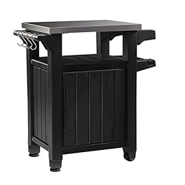 Keter BBQ Beistelltisch Unity, Graphit, L 70 x B 54 x H 90 cm, wetterfest, Arbeitsplatte aus Edelstahl, Outdoor Sideboard, perfekt für das Grillen im Winter
