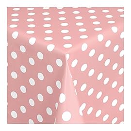 Wachstuch Tischdecke Wachstischdecke Gartentischdecke, Abwaschbar Meterware, Länge wählbar, Punkte Rosa Weiß (150-11)