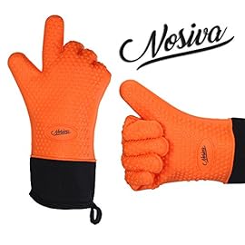 NOSIVA Ofenhandschuhe, Silikon 230 ℃ Extrem Hitzebeständige Grillhandschuhe BBQ Handschuhe zum Kochen, Backen, Barbecue Isolation Pads, 1 Paar, Orange