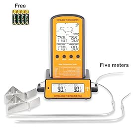 TOROAST Drahtloser Barbecue Backofen Grillthermometer, BBQ Bratenthermometer, Fleisch Küche Thermometer mit Temperaturalarm, Dual Edelstahl Fühler, einfach zu gebrauchen, °C und °F einstellbar, Batterien enthalten