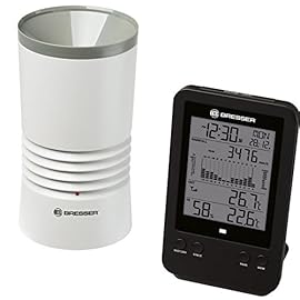 Bresser Profi Regenmesser Station mit DCF Funkuhr, Wecker, Außentemperatur, Innentemperatur und Innenluftfeuchtigkeit mit Hintergrundlicht und Datenspeicherung von Tiefst- und Höchstwerten