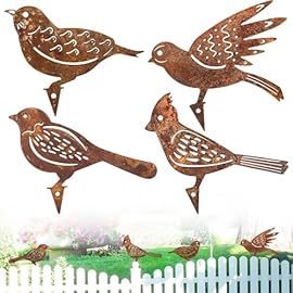 Rostiges Vögel Deko Rost,4 Stück Gartendeko Rost Vogel,Deko Edelrost Vögel Metall Gartenstecker Vogel Stecker Baumstecker,Metall Vogel Baumstecker für Holz Zaunfiguren Gartendeko (Eiserner Vogel)