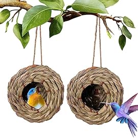 2 Stück Vogelnest, Kolibri-Haus für Draußen Aufhängen, Nisthöhlen für Vögel, Gras Hängendes Vögel Haus, Handgewebt Kleine Vogel Nistkästen, für Garten Dekoration (9×15 cm)
