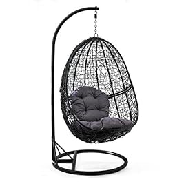 JOM Hängesessel Polyrattan mit Gestell Hängestuhl Hängeschaukel Hängekorb Inkl. Sitz und Rückenkissen