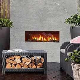 Faber TheMOOD [Gaskamin Außenbereich]: Rückwand in Cortenstahl gerostet – Propan/Butan Gasflasche – Dekoholz