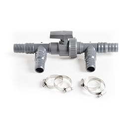 • 3 – Wege Ventil und T Stück, kompakte Ausführung, Bypass, mit Edelstahl Schlauchschellen, für 32 und 38 mm Schlauch