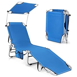 COSTWAY Sonnenliege mit Dach & Seitentasche, klappbarer Liegestuhl mit 5 verstellbaren Rückenlehne, Strandliege Gartenliege für Garten, Pool, Terrasse, 193 x 56 x 32 cm
