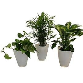 Pflanzenservice 891146 Tropic-Trio, Efeutute Zimmerpalme mit Dieffenbachia und Dekotopf, weiß