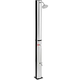 Arebos Solardusche | 37 Liter | 199 cm | inklusive Abdeckhaube | mit integriertem Thermometer | Silber-Schwarz | runder Duschkopf | mit Fußdusche | mit Gartenschlauch-Anschluss | inkl. Montagematerial