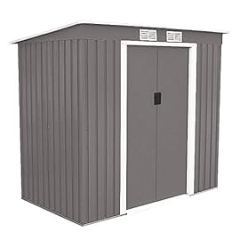 HATTORO Metall Gerätehaus Verschiedene Größen Geräteschuppen Garten Schuppen Gartenhaus Hellgrau (P100)