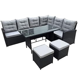 SVITA Queens Poly Rattan Sitzgruppe Couch-Set Ecksofa Sofa-Garnitur Gartenmöbel Lounge Grau, Schwarz oder Braun