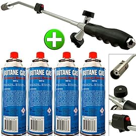 Unkrautbrenner + 4 Butangaskartuschen mit Bajonettanschluss