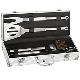 Edelstahl Profi Grillbesteck-Set 5-teilig im Aluminium-Koffer BBQ Grill-Utensilien Besteck Zubehör fürs Grillen