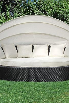 Sonneninsel, Polyrattan Garten Lounge, Chill-Out Sofa mit Baldachin (195x115x140 cm), schwarz, Aluminiumgestänge, mit Sitzpolster und 6 Kissen beige