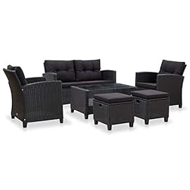 JUNZAI 6-TLG. Garten-Sofagarnitur mit Auflagen, Balkonmöbel Set, Gartenmöbel Set, Gartenlounge Set, Terassenmöbel, Loungemöbel Terrasse, Lounge Sofa Outdoor, Poly Rattan Schwarz