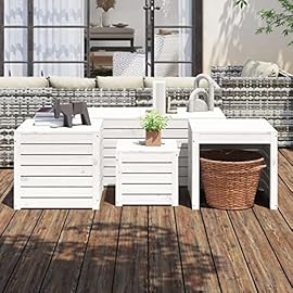 JUNZAI 4-TLG. Gartenbox-Set, Kissenbox Outdoor WassBerdicht, Auflagenbox, Aufbewahrungsbox, Terrassenschrank, Gartentruhe, Gartenkiste, Garten Aufbewahrung, Weiß Massivholz Kiefer