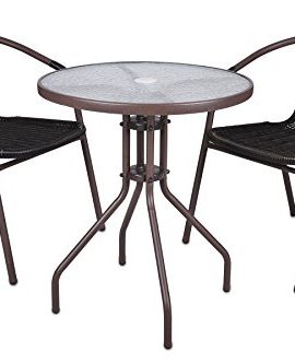 Bistrotisch mit Glasplatte und 2x Bistrostuhl Stapelstuhl Poly Rattan 3er Set Bistroset