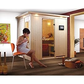 Fiona 2 – Karibu Sauna inkl. 9-kW-Bioofen – mit Dachkranz –